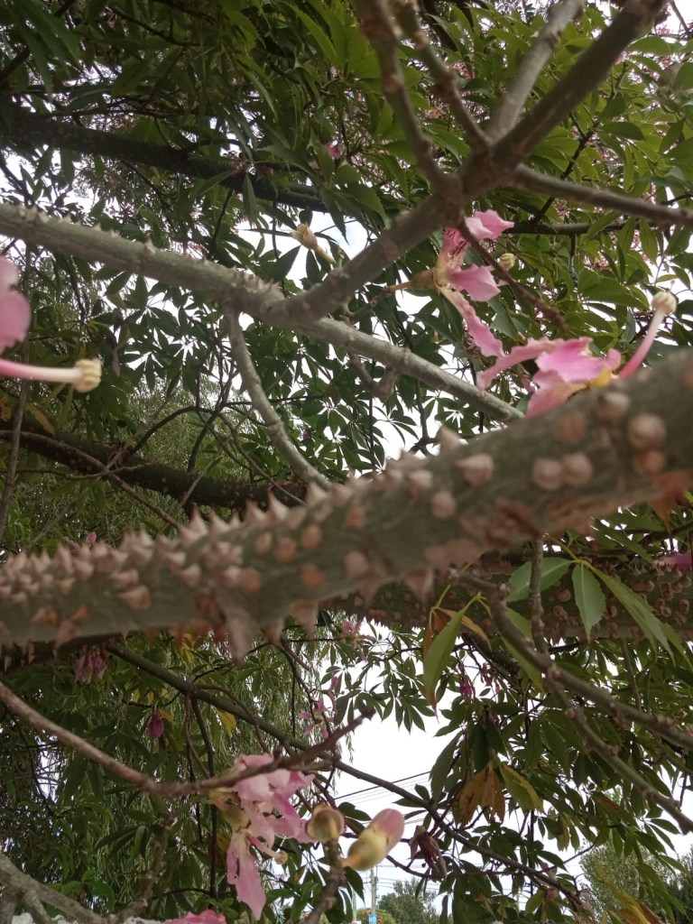 Heute stelle ich einen weiteren stacheligen Baum vor, der jetzt im uruguayischen Herbst seine Blätter abwirft und mit mit einem weithin sichtbaren Blütenmeer aufwartet.