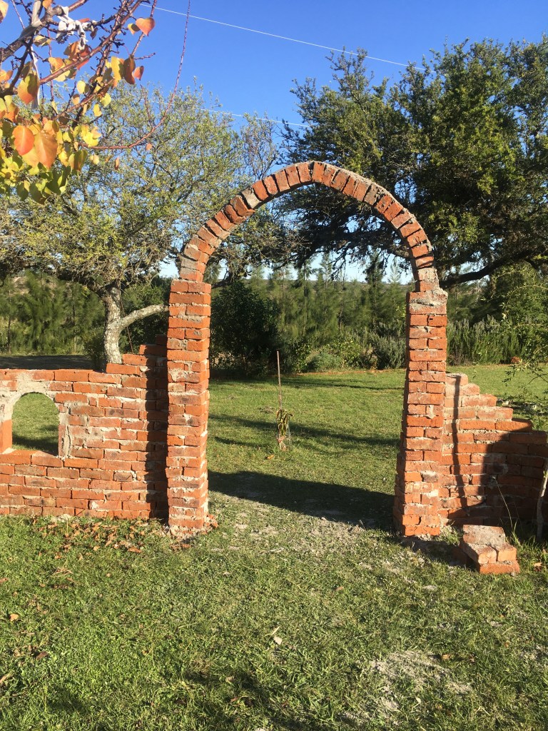 Wenn die Säulen hoch genug gemauert sind, wird das Bogengerüst eingesetzt und Ziegel auf Ziegel verlegt.