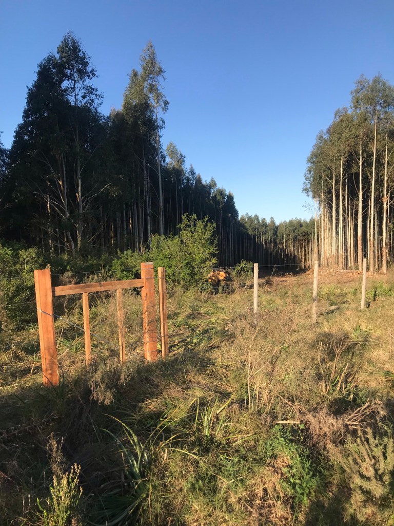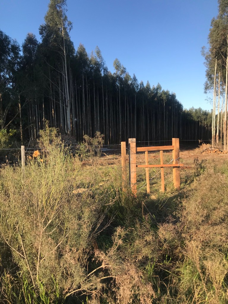 Die Vorbereitungen für die Eukalyptus-Ernte sind weiter in vollem Gange. Überall dort, wo vor einigen Wochen Schneisen in den Wald geschnitten wurden, sind jetzt die Zaunmacher unterwegs. Es müssen Eingänge für die großen Schneidemaschinen geschaffen werden.