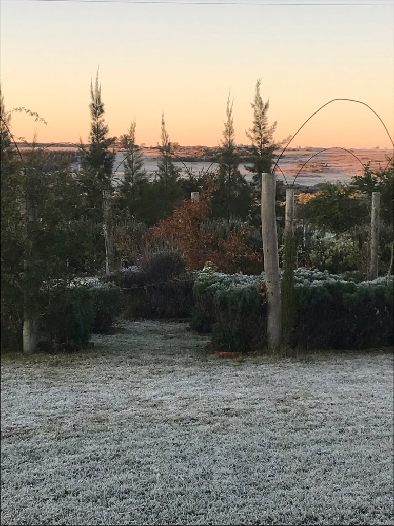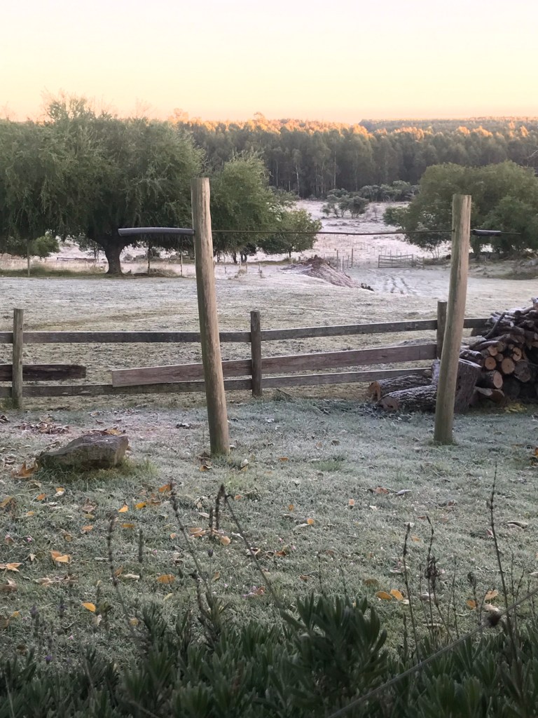 Man muss allerdings vorbereitet sein: geduscht wird am Abend. Auch der Wasserkessel für den Kaffee zum Frühstück ist mit Wasser gefüllt. Dann kann man gelassen auf die Sonne warten, die gegen 8 Uhr über dem Eukalyptus-Wald erscheint und in minutenschnelle den Raureif schmelzen lässt. Der Winterzauber ist vorbei und ein angenehmer Sonnentag mit Temperaturen um die 12 Grad steht bevor.