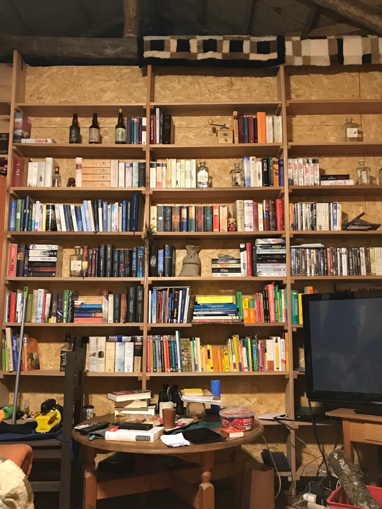 Als wir vor zwei Jahren im Wohnzimmer die Zwischenwand mit den Regalen einzogen, waren wir der Meinung, nun für die nächsten Jahre genügend Platz für unsere Bücher zu haben. Maximal fünf Regalmeter haben wir noch übrig!