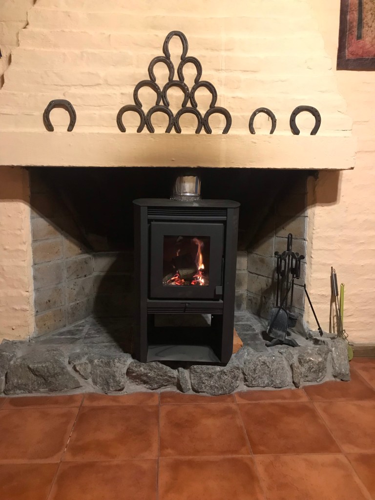 Der Einbau erwies sich dann doch nicht als so einfach wie erwartet. Aber wir sind die letzten sechs Jahre durch die uruguayische Schule gegangen. Ganz nach dem Motto: „was nicht passt, wird passend gemacht“ haben wir mit viel Gerüttel und etwas Gewalt das Ofenrohr zuerst in den Kaminschacht und dann in die Öffnung des Ofens gestopft. Nicht ganz perfekt, aber für unsere Zwecke völlig ausreichend. Alles ist dicht, der Rauch zieht nach oben ab und ein verrauchtes und staubiges Wohnzimmer gehört der Vergangenheit an. Wir können nun den ganzen Tag über heizen, das Haus kühlt nicht mehr vollständig aus und wir haben eine saubere und sichere Wärme.