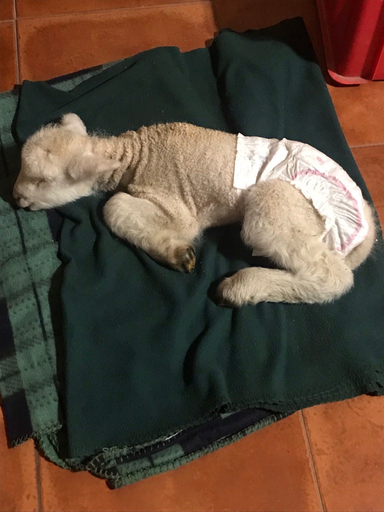 Die Mutter erholte sich rasch, das Lamm konnte nicht aufstehen und lag zappelnd in einer Ecke. Wir versorgten es mit Flaschenmilch, an Säugen war nicht zu denken.