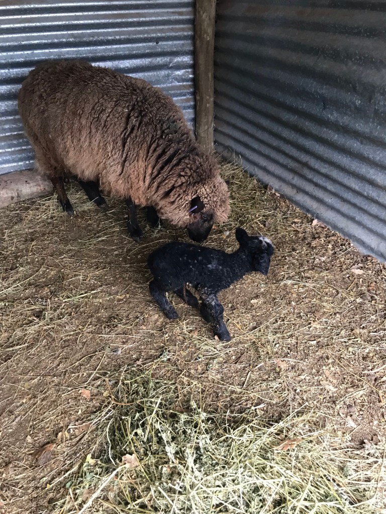 Heute früh war ein weiteres Lämmchen geboren, Mutter und Kind sind wohlauf.
