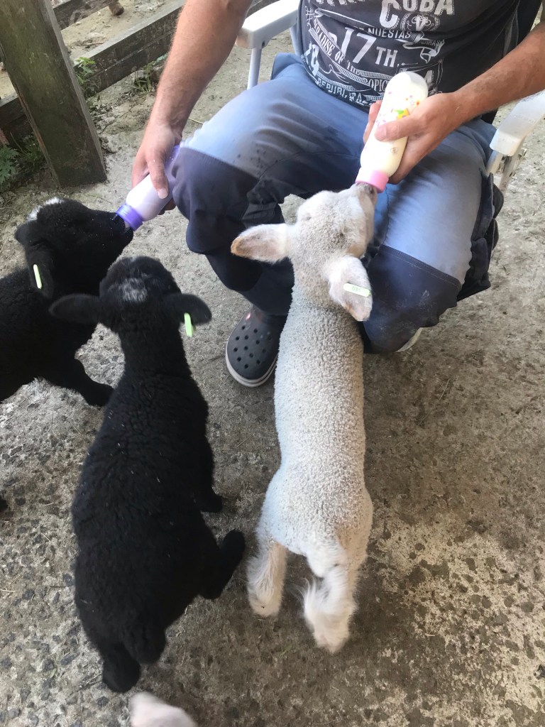 Die Lammzeit ist beendet. Es kehrt langsam wieder etwas Ruhe und Routine ein. 31 gesunde Lämmer konnten wir begrüßen. Fünf Lämmer haben den Start ins Leben leider nicht geschafft. 7 Flaschenlämmer haben wir in diesem Jahr in unserer Obhut, und die halten uns ordentlich auf Trab! Sie schlafen nachts mittlerweile draußen in einem geschützten Unterstand und haben tagsüber ihre ganz persönliche Weide zum Austoben. Vier Mahlzeiten bekommen sie im Laufe des Tages. Die Milchflaschen werden im Doppelpack gefüttert. Das spart Zeit, verhindert aber nicht das aufgeregte Gewusel, das jedes Mal zur Fütterzeit entsteht. Denn satt sind unsere Lieblinge nie! Die ersten fangen schon an, am Gras zu knabbern. Die Nahrungsumstellung führt oft zu Darmkoliken. Wie bei Menschenbabies auch, die von den Dreimonatskoliken gequält werden, bekommen Lämmer ihre Dreiwochenkoliken und leiden und jammern. Da ist viel Zuwendung erforderlich. Die Flaschenlämmer werden geknuddelt und die Lämmer draußen auf der Weide, die mit ihren Müttern unterwegs sind, müssen auch genau beobachtet und gegebenenfalls behandelt werden.