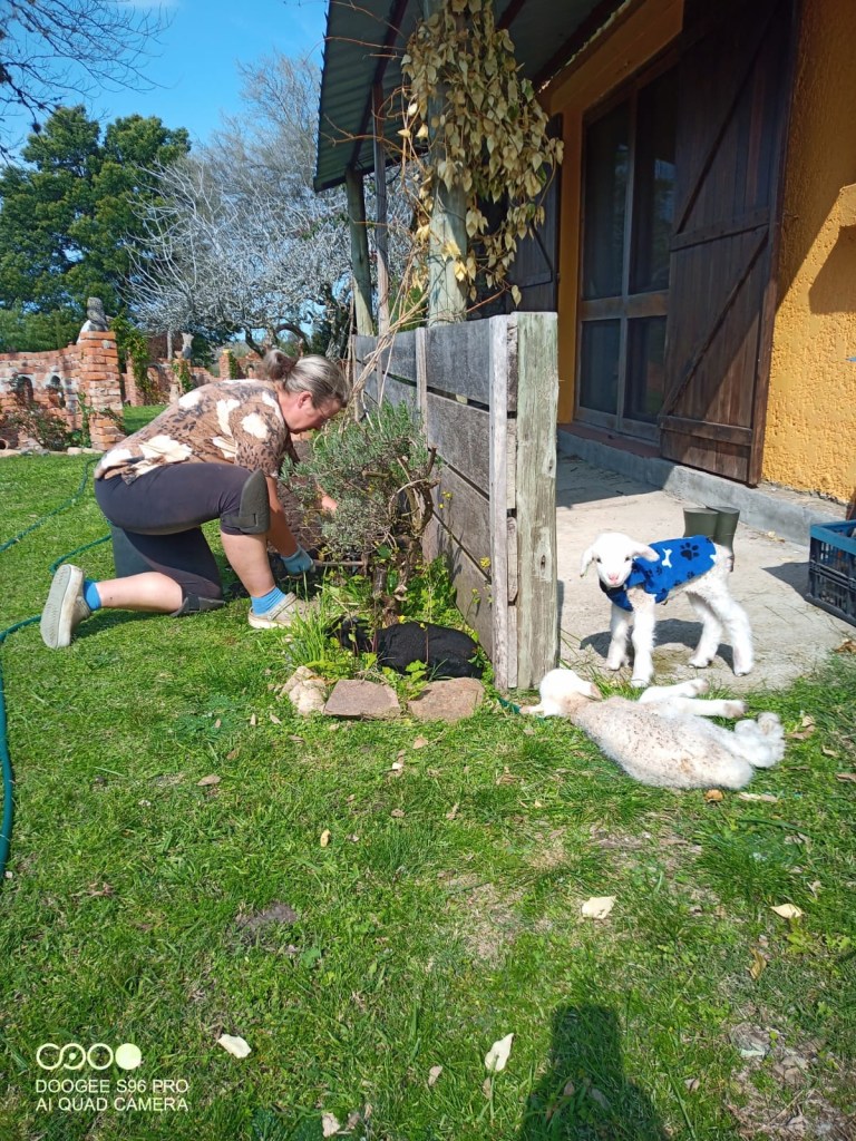 Wir haben wieder eine ziemlich turbulente Woche hinter uns. Vor zehn Tagen, am 25. August, dem uruguayischen Nationalfeiertag , waren wir noch frohen Mutes. Seit fast zwei Wochen war kein Lamm mehr zur Welt gekommen. Die anstrengende Lammzeit schien zu Ende. Unsere sieben Flaschenlämmer waren aus dem Gröbsten raus, bekamen nur noch morgens, mittags und abends eine Milchflasche und wir freuten uns auf etwas mehr Ruhe und mehr Zeit für die Gartenarbeit. Dann kam am Freitag, Samstag und Sonntag jeweils ein Lamm zur Welt. Alle Nachzügler waren ziemlich klein, wogen nur um die 2,5kg, waren aber fit und die Mütter sehr fürsorglich. Sie bekamen gemeinsam ein Extragehege mit Haus, sodass es die Lämmer in der Nacht schön warm haben. Für die große Herde waren die Lämmer doch zu mickrig.