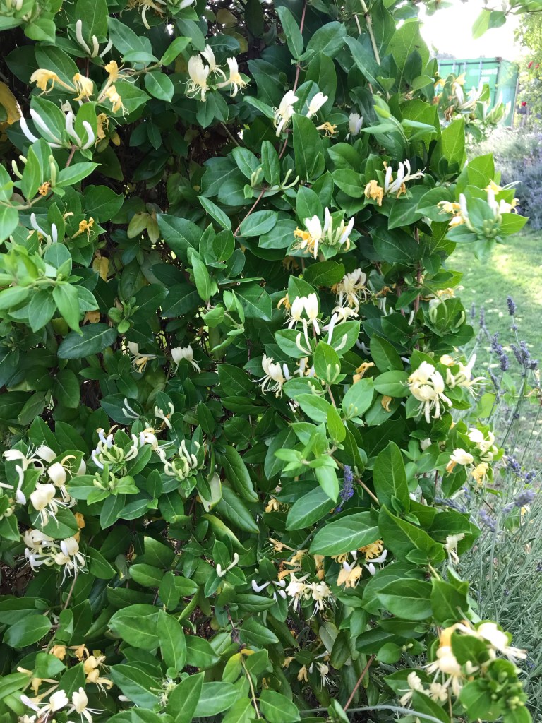 Wir haben eine stark rankende , immergrüne Art auf dem Campo, die innerhalb nur weniger Jahre ganze Baumgruppen überwuchert. Sie blüht in weiß/gelb und verströmt vor allem in den Abendstunden einen unglaublichen Duft. Aber auch tagsüber muss man nur der Nase nachgehen, damit man das Geissblatt findet.