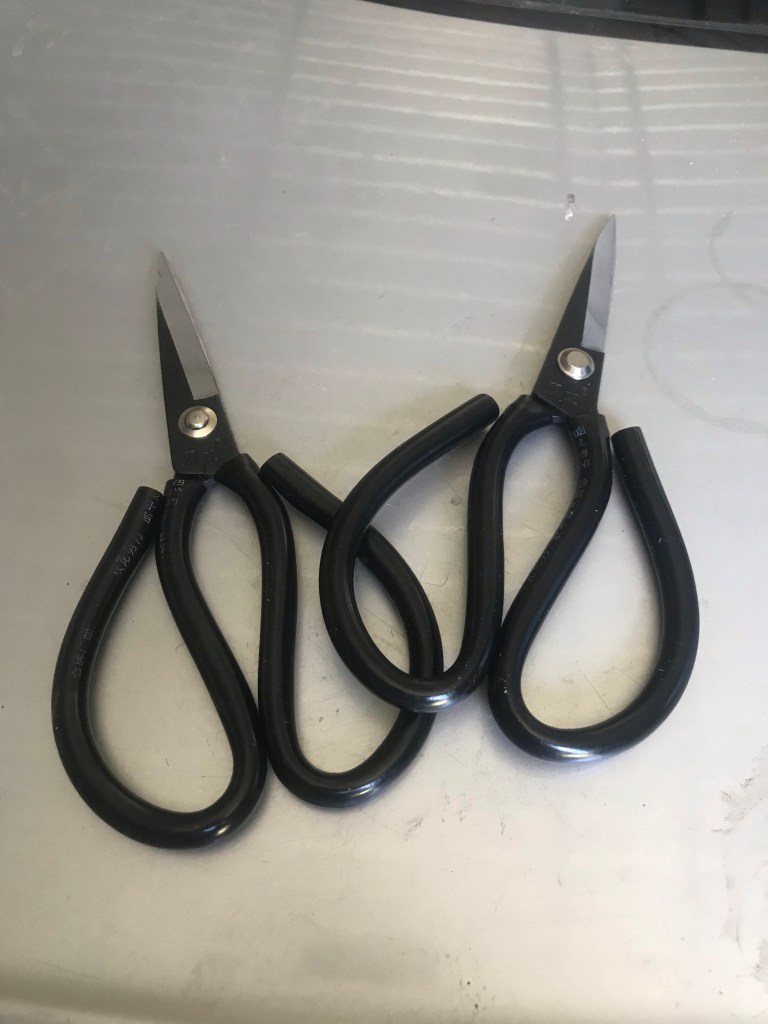 Auf den ersten Blick etwas ungewöhnlich, entpuppten sie sich dann als wahre Schneidewunder. Die Schlaufen für die Finger sind groß und bequem, das Werkzeug liegt sehr gut in der Hand und die Druckverteilung ist optimal. Auch wenn die Schneidefläche recht klein erscheint, kamen wir mit den sehr scharfen Scheren sehr schnell voran. Anfangs piksten wir uns noch ziemlich oft selbst in die Finger, das gab sich aber nach einigen Tagen, als wir mehr Routine damit hatten. Die Tiere kamen, bis auf einige wenige kleine Blessuren, in diesem Jahr sehr verletzungsarm davon!