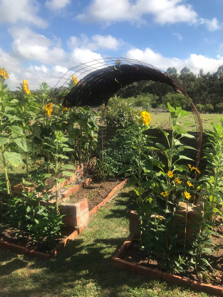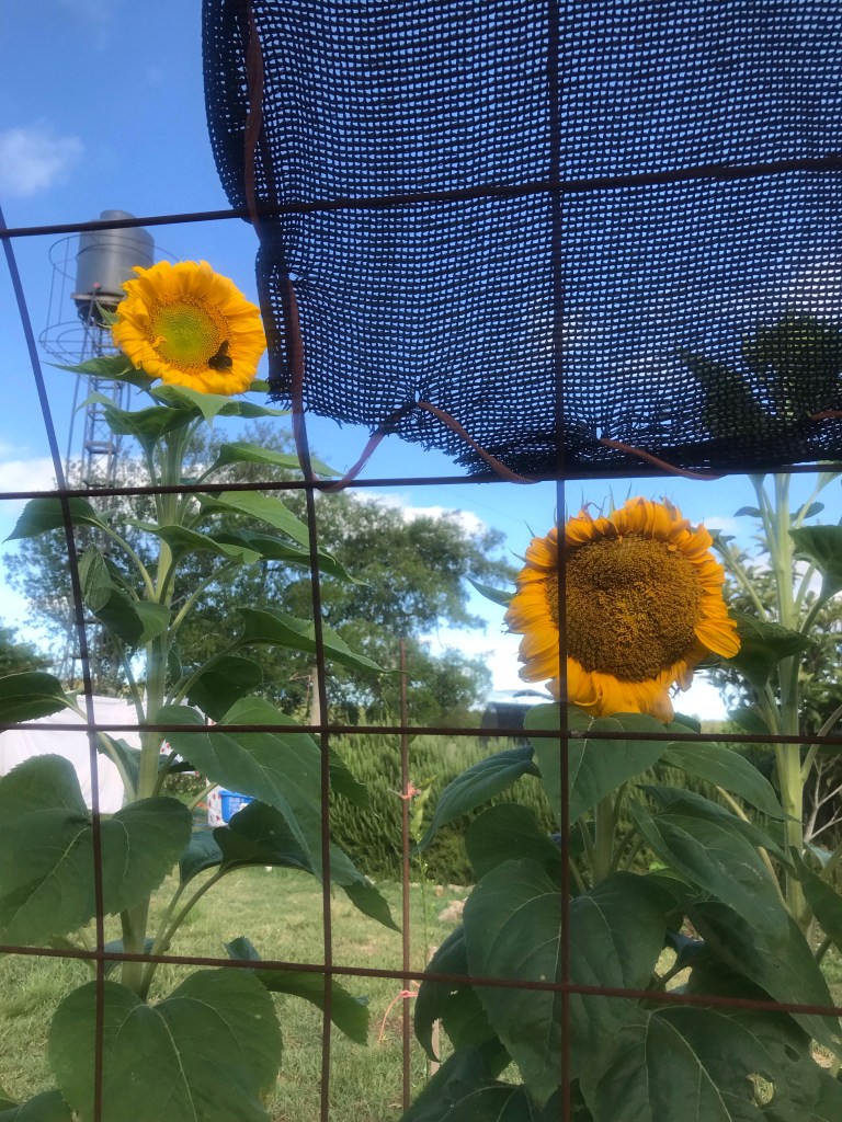 Drei mal täglich wird gegossen ! Die Sonnenblumen geben den Tomaten und Paprika im Inneren Schutz vor Wind und Sonne. Es ist eine schöne Einheit geworden. Auch die Topinambur wachsen zu kräftigen Pflanzen heran. Alles ist so dicht gewachsen, dass Unkraut kaum eine Chance hat. Majoran, Petersilie, Schnittlauch und sogar zwei Gurkenpflanzen wachsen gut behütet. Einzig den Erbsen und Bohnen ist es eindeutig zu heiß! Sie haben vor Wochen schnell gekeimt und sich zu schönen Pflänzchen entwickelt. Nun sind sie aber trotz regelmäßigem Gießen einfach vertrocknet. Die Bohnen haben Blüten gebildet, aber leider keine Schoten. Und auch die Tomaten blühen sehr sparsam. Es ist einfach zu heiß!