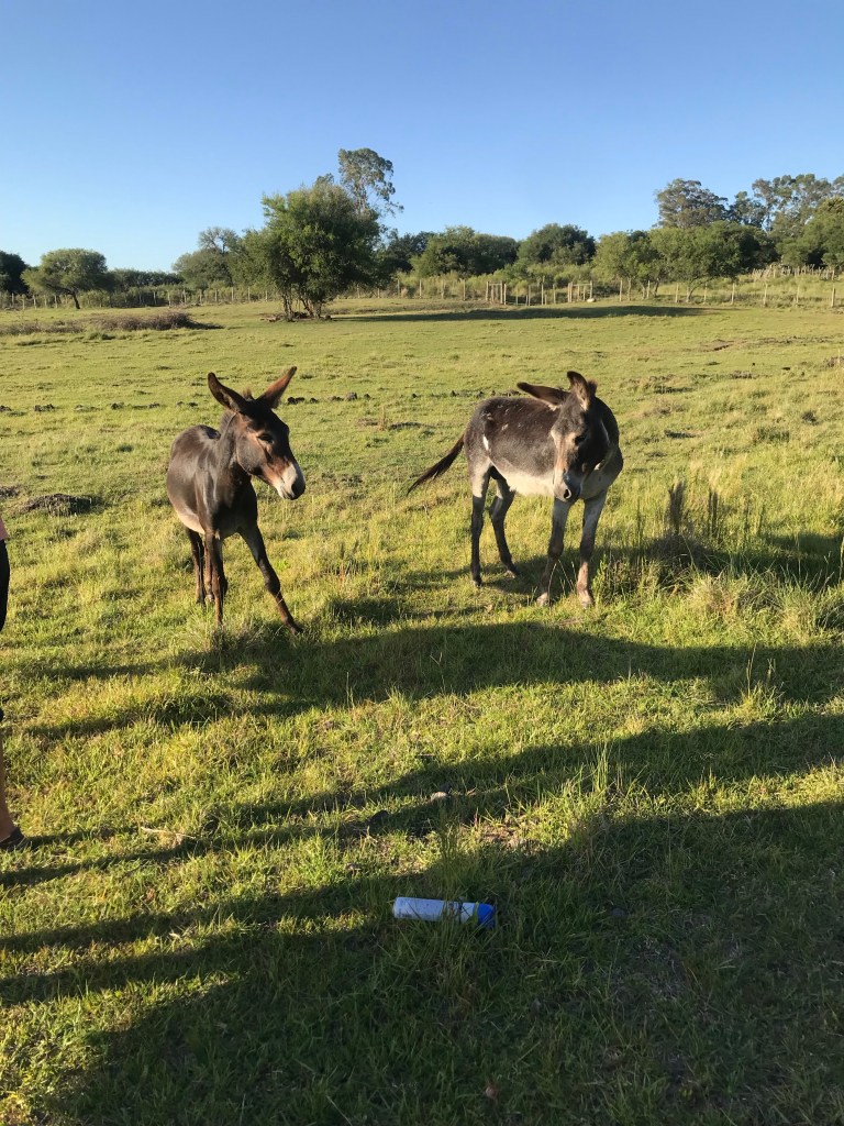 Wir haben die zwei männlichen Nachkommen nicht kastrieren lassen. Ob das ein Fehler war? Wir wissen es nicht. Drei Hengste in einer Herde; bisher ging es gut, jetzt ist ordentlich Zoff bei den Eseln. Lizzy und ihre Tochter haben wir ja nach der Geburt der kleinen Eselin gleich auf eine weit entfernte Weide gestellt, das war gut so, denn weiteren Nachwuchs wollen wir nicht. Bei den Hengsten ist nun noch unsere Eseloma. Sie hat über 20Jahre auf dem Buckel, ist eine ruhige und stoische Eselin und lässt sich durch das Machogehabe der drei Hengste nicht aus der Ruhe bringen. Der jüngste der Gruppe, der dreijährige Eduardo, hält sich auch weitgehend aus dem Gezetere heraus. Bleiben noch die zwei Großen, die rund um die Uhr für ordentlich Geschrei sorgen. Sie kämpfen erbittert mit Hufen und Zähnen, Verletzungen bleiben da nicht aus. Wir gehen täglich über die Weide, verteilen Äpfel und Karotten und während die Tiere fressen, werden die Wunden, meist oberflächliche Kratzer, mit einem speziellen Spray versorgt. Das klappt ganz gut, denn zu nahe dürfen wir momentan nicht ran, sonst geraten wir zwischen die Hufe. Handzahm sind unsere Herren zur Zeit wirklich nicht.