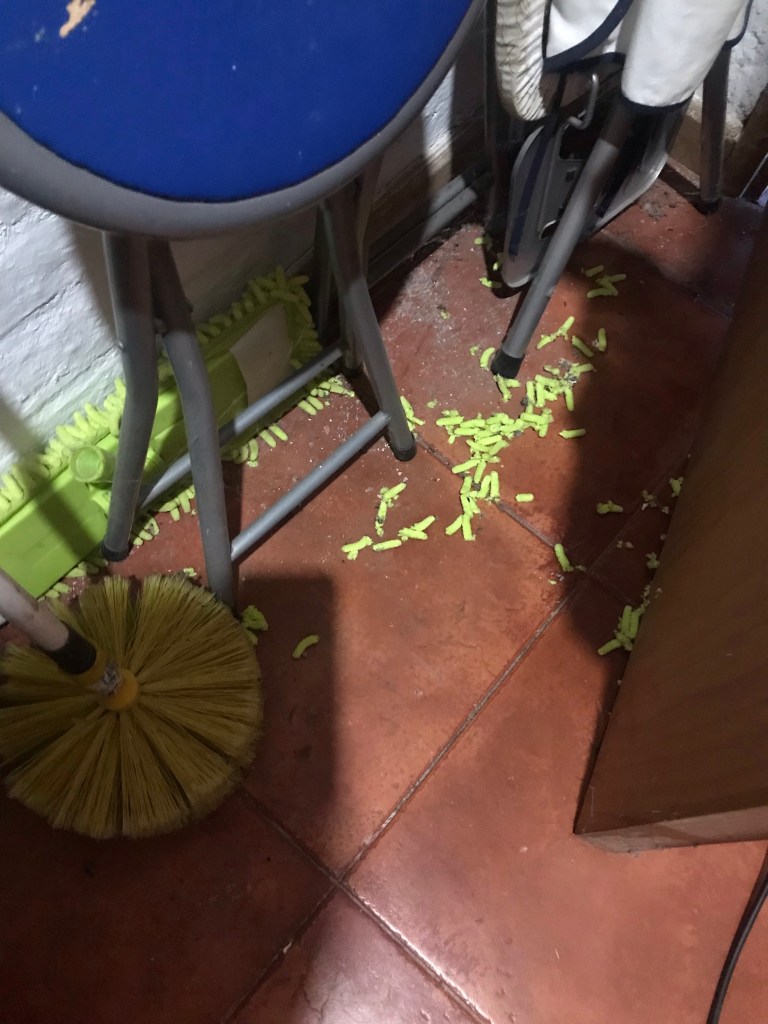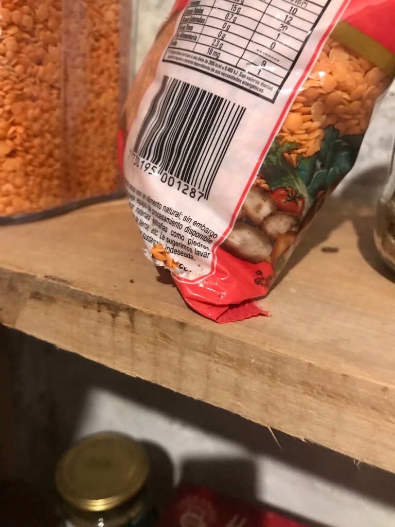 Aus jedem Paket, das ich in die Hand nahm, rieselten entweder Linsen, Mehl und Nudeln. Die kleinen Suppennudeln lagen über die ganzen Regale verstreut! Unglaublich, was so ein daumengroßer Nager in der Nacht alles anstellen kann!