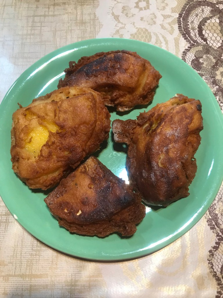 Oder man bereitet einen etwas dickeren Pfannkuchenteig vor, wendet die Kürbisstücke darin und backt sie schwimmend im Fett aus. Mit Zimt und Zucker bestreut hat man einen schnellen Nachtisch oder einen leckeren Snack für zwischendurch.