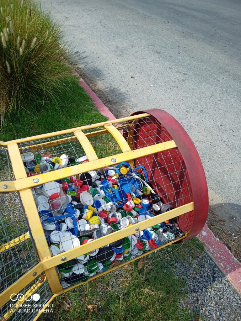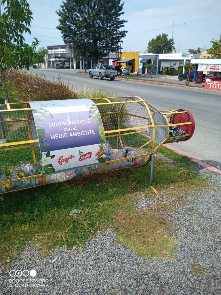 Vor einiger Zeit wurden diese Müllflaschen aufgestellt. Hier werden die Getränkeflaschen separat gesammelt. In die große Öffnung die Flaschen,