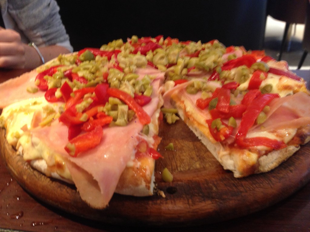 Noch ein Wort, das man sich merken muss! Eigentlich heißt alles, was paniert ist, milanesa. Das am weitesten verbreiteste Gericht ist allerdings ein Rinderschnitzel, man bestellt sich milanesa de carne. (carne heißt im Spanischen übersetzt Fleisch, in Uruguay nur Rindfleisch!!!!) Es gibt auch milanesa de pollo (poscho!!) , dann bekommt man ein Schnitzel aus Hühnchenfleisch. Ganz selten gibt es auch milanesa de cerdo (serdo) das Schweineschnitzel. Mit Schinken belegt und Käse überbacken, dazu ein Spiegelei: besser gehts nicht! Nur nicht vergessen, nach dem Servieren die Pommes und alles andere zu salzen!!! Aber das Thema hatten wir ja schon.