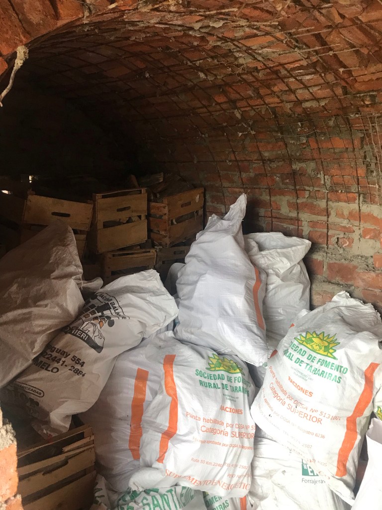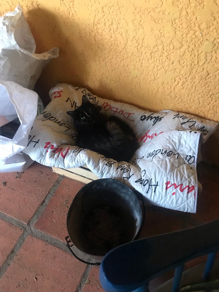Wir haben mit den letzten Ziegeln, die wir noch hatten, an unserer Mauer weitergebaut. Eine neue Lieferung muss erst bestellt werden.
