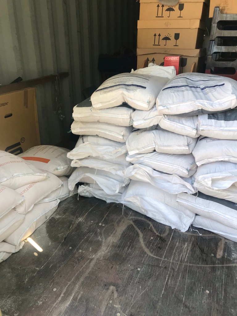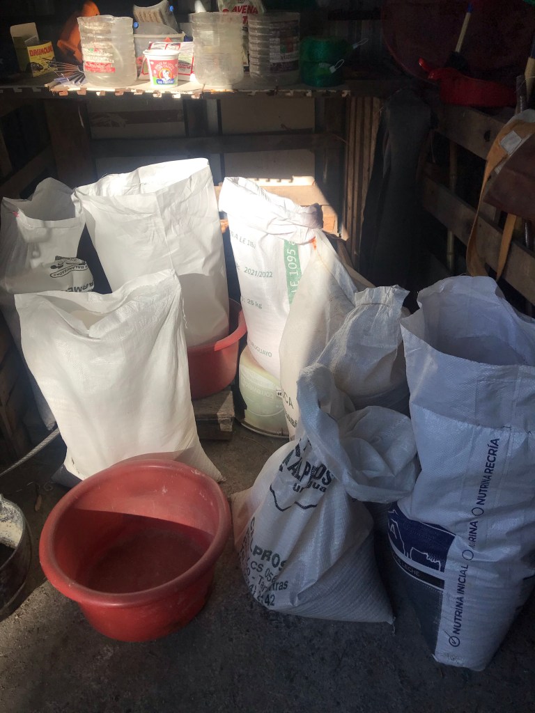 Das wollte ich so nicht akzeptieren und machte mich am Montag auf nach Tarariras. Irgendwo musste doch noch Futter aufzutreiben sein!!!! Der erste Laden, der mir einfiel, hatte geschlossen. Dann erinnerte ich mich an ein Geschäft, wo Möbel, Spielzeug und allerlei Krimskrams verkauft werden. Auch da war ein Schild angebracht, dass sie Tierfutter haben. Ich fragte nach Hafer. Der war wichtig für die Esel und das Pferd, die jetzt im Winter auch Zusatzfutter brauchen! Ich bekam leider eine Absage, nein , Hafer hätten sie nicht und auch sonst nichts, was man den Eseln geben könne. Sie hätten nur Pellets für Wiederkäuer. Na, das ist doch besser als nichts. Auch die Schafe brauchen dringend Futter. Ich kaufte zwei Sack zur Probe. Wenn meine Schafe das neue Futter fressen, wollte ich wiederkommen und mehr kaufen.
