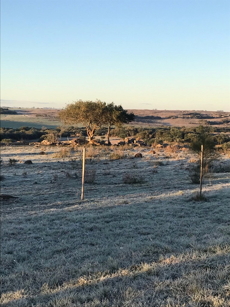 Die Luft ist trocken. Nur am Boden zeigt sich dicker Raureif bei etwa -6 Grad. In ein Meter Höhe sah es schon deutlich angenehmer aus.
