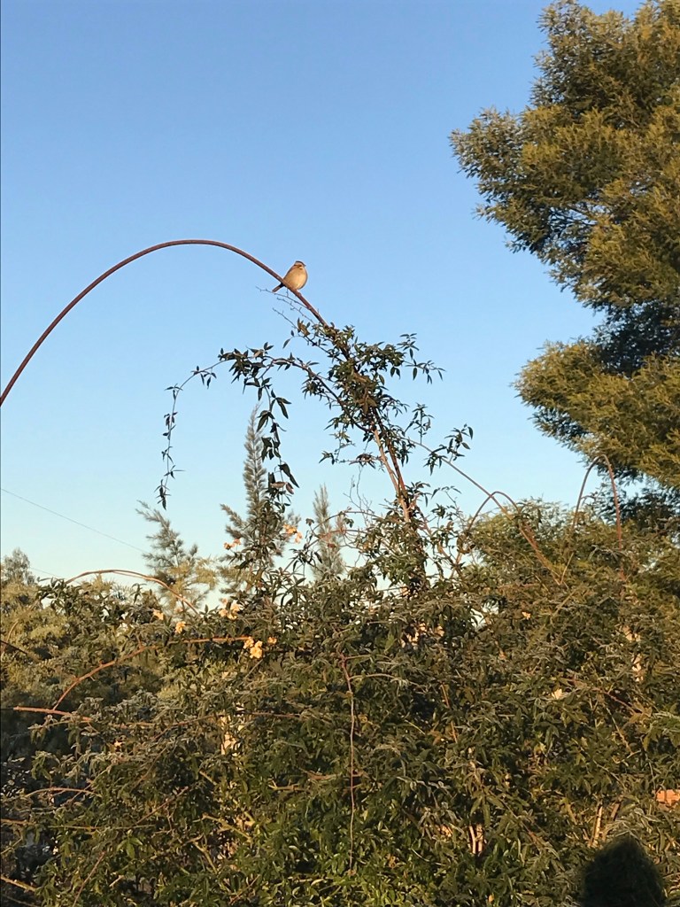 Das Vögelchen genießt die aufgehende Sonne und damit einige wärmende Strahlen.