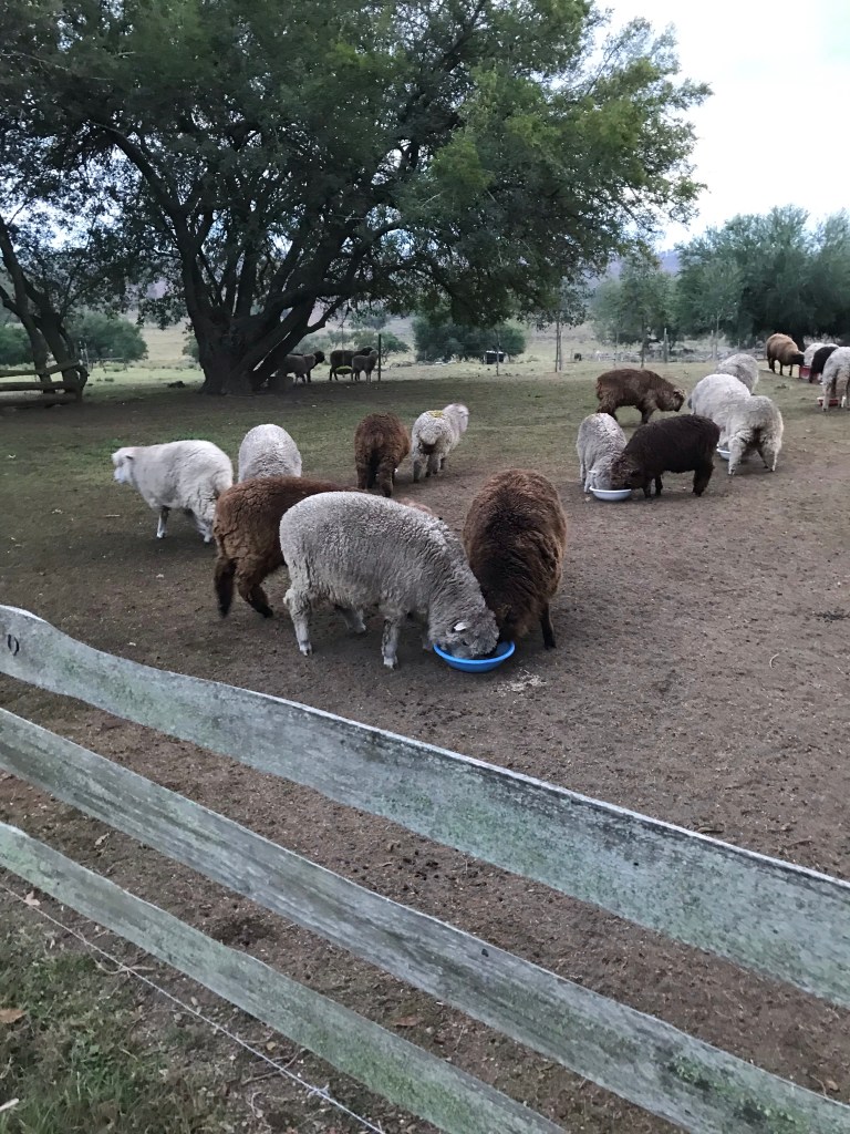 Die Schafe freuen sich jeden Morgen über ihr Futter, das aus einer Mischung aus Hafer, Mais und Fertigfutterpellets besteht. Wir bekommen sie satt. Das ist das Wichtigste.