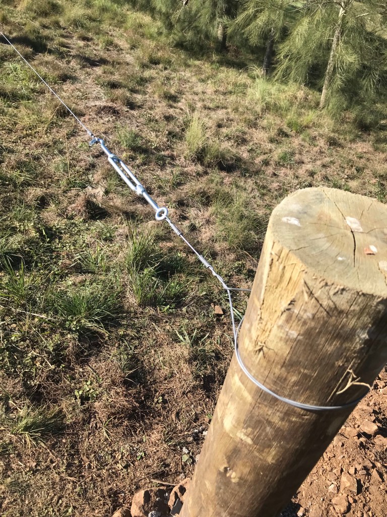 Mit dem richtigen Handwerkzeug wird der Draht fest zwischen den Hauptpfosten gespannt!