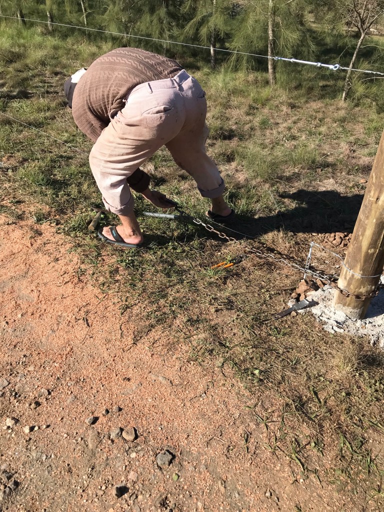 Es ist eine interessante Sache, das Zaunmachen, und wir schauen fasziniert dabei zu. Damit die Drähte nicht locker werden, ist Erfahrung gefragt und Daniel ist hier der Profi! Was er montiert, sitzt und hält!