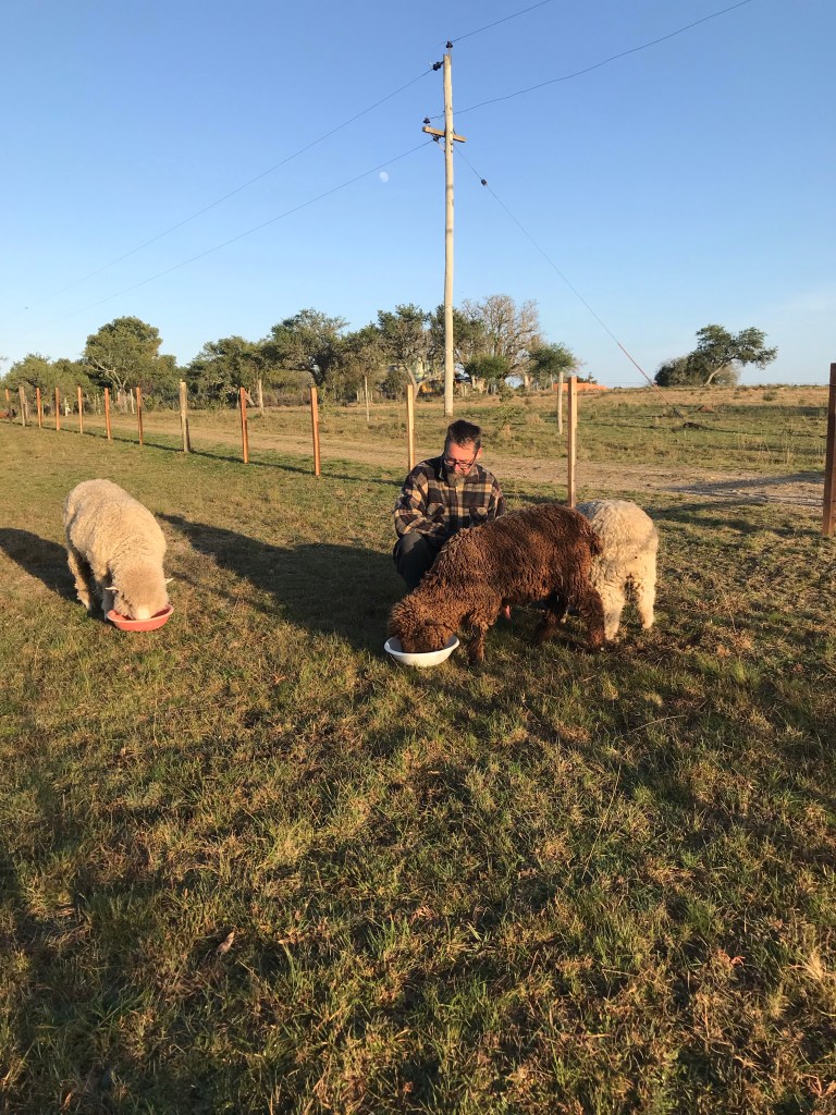 Auf der dazugehörigen Weide waren vier Schafböcke untergebracht, die nun umziehen mussten, damit wir in Ruhe arbeiten können. Wir brachten sie auf die neue Weide, deren Zaun Daniel vor kurzem fertiggestellt hat. Hier gibt es zwischen den Bäumen Gras im Überfluss! Mit dem Umzug waren drei der Böcke allerdings nicht einverstanden, büxten mehrmals aus und standen wieder am Eingang ihres gewohnten Geheges.