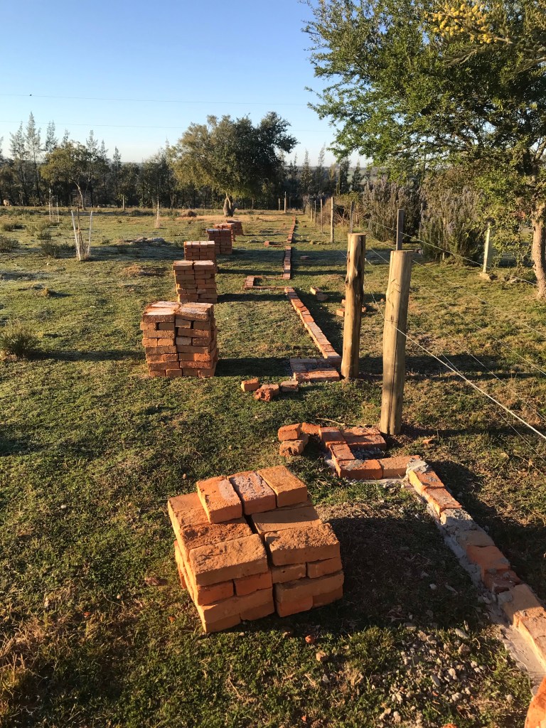 Sobald Steffen sie mit dem Schubkarren an Ort und Stelle transportiert hat, können wir mit dem Mauern beginnen.