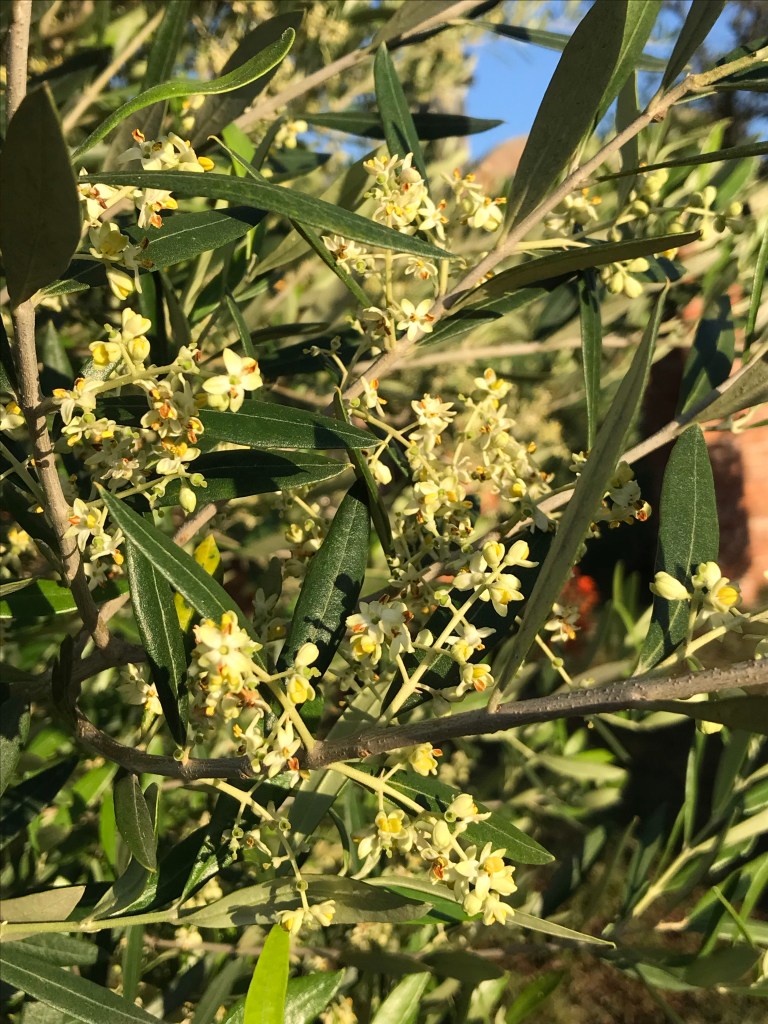 Die hellgelben Blüten locken unzählige Insekten an. Wir sind schon sehr gespannt darauf, ob sich daraus auch wirklich Oliven entwickeln.