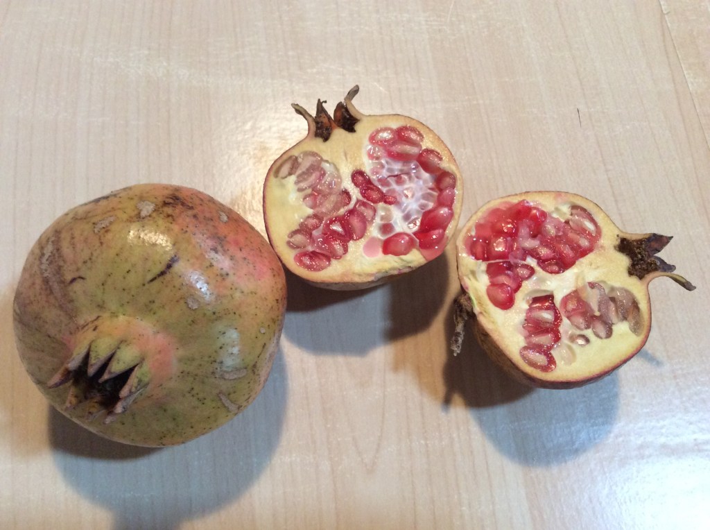 Ursprünglich kommt der Granatapfel aus Mittel- und Westasien. Im Iran und Persien wird er angebaut und auch im Mittelmeerraum. Der Busch ist recht anspruchslos, verträgt leichten Frost bis -10 Grad, mag volle Sonne und trägt, nachdem er im Frühling seine orangenen Blüten gezeigt hat, im Spätsommer pralle Früchte. Der Granatapfel gilt in heutiger Zeit als „Superfood“, er ist vollgepackt mit allem, was gesund ist: Mineralstoffe, Vitamine, Antioxidante und vielem mehr.