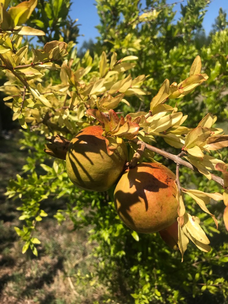 Wir haben viele Granatapfelbüsche im Park gepflanzt, weil sie auch in Argentinien und Uruguay hervorragend wachsen. 12 oder 15 sind es, ich weiß es gar nicht genau.