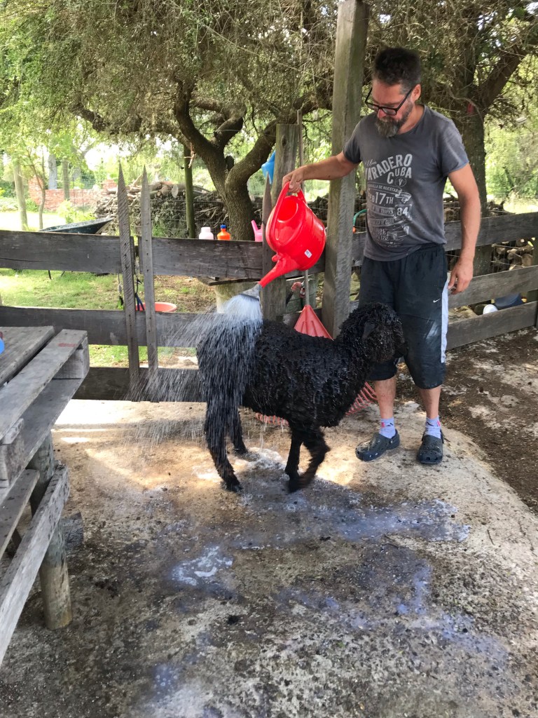 Hagen hat es das Leben gerettet! Er wird nicht verkauft. Sein Fell ist sehr begehrt, weil es sehr gerne als Sattelauflage beim Reiten genutzt wird. Aber nun werden wir ihn behalten. Er ist sehr anhänglich und ein Flaschenlamm vom letzten Jahr. Er wird in Zukunft als Zuchtbock unseren alten Octavio ablösen, der sich auf sein Altenteil zurückgezogen hat und den Ruhestand genießt.
