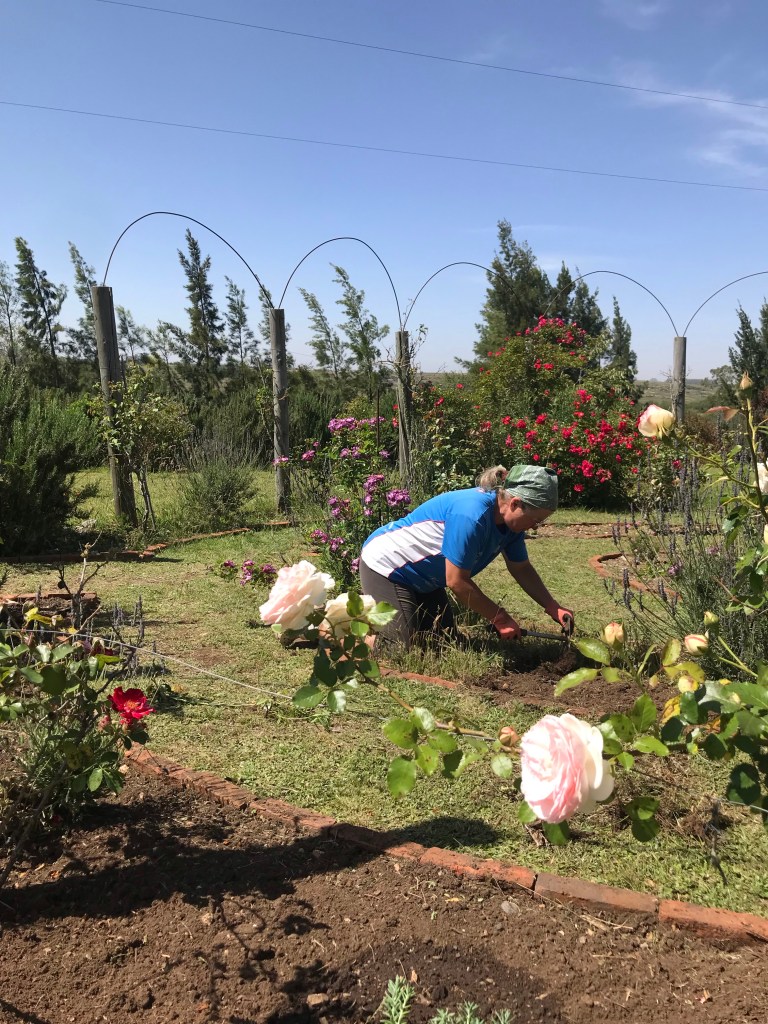Das denke ich mir jedesmal, wenn ich im Park am Werkeln bin: eine wunderschöne Landschaft, umgeben von Duftwolken der aufgeblühten Rosen, inmitten eines bunten Blumenparadieses!