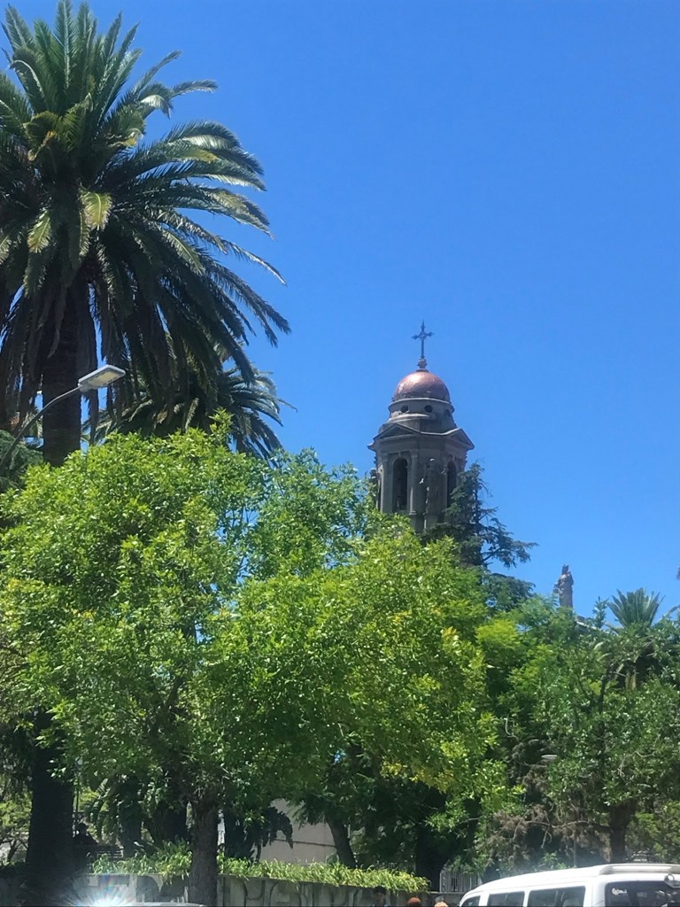 Das Stadtzentrum liegt um die Kirche herum, die nur zu Gottesdiensten geöffnet ist und nicht besichtigt werden kann. Viele kleine Geschäfte laden zum Bummeln ein und auch wir wurden hier und da fündig. Punkt 12 Uhr ist allerdings Schluss: alle Läden schließen, die Stadt mutiert zum Geisterdorf. Wir hatten Mühe, noch eine offene Bäckerei zu finden. Das Mittagessen nahmen wir dann auf einer Parkbank im Schatten der Bäume ein.
