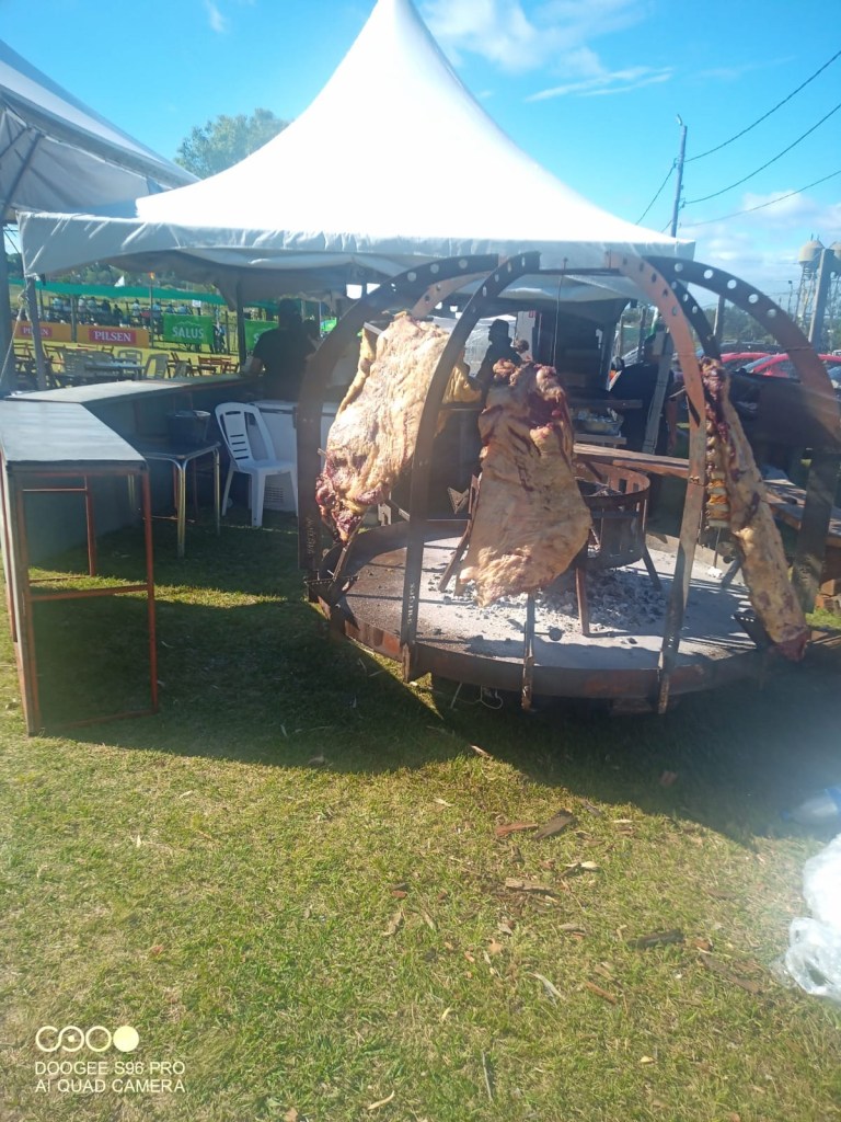 Für das leibliche Wohl war reichlich gesorgt. Es gab alles, was die uruguayische Küche hergibt. Auf dem angeschlossenen Markt konnte man sich mit allem versorgen, was man so braucht: typische Gaucho-Kleidung, alles rund ums Pferd, Haushaltswaren, die obligatorischen Klappstühle, Kinderspielzeug und vieles mehr. Auch Messer in unterschiedlichen Größen und Schlagringe!!