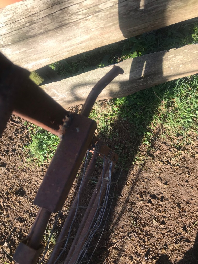 Mit brachialer Gewalt versuchte er es zuerst am Tor und verbog dabei die Verriegelung, die wir später nur mit einer Metallsäge öffnen konnten. Letztendlich hatte er dann zwei Holzbretter zertrümmert und war hindurchgeschlüpft.