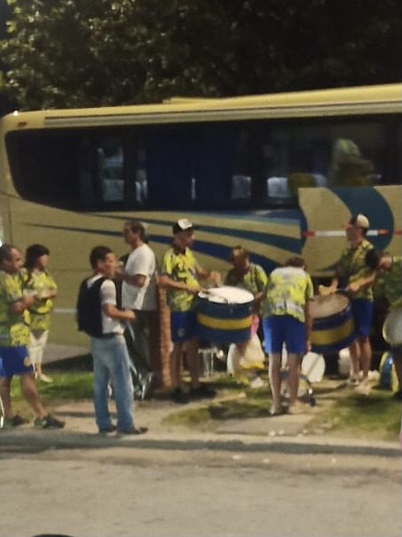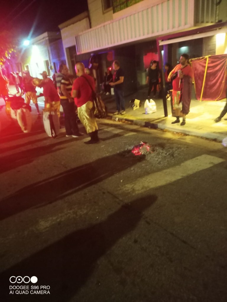 Es ist eine ziemliche Unart in Uruguay, in Brasilien wohl auch, vor den lautstarken Umzügen auf den Straßen ein Lagerfeuer zu entzünden. Das wird wohl für die Bespannung der Trommeln gebraucht. So habe ich es jedenfalls schon öfters beobachtet und ist für mich die einzige Erklärung dafür. Das stört nicht mal die Polizei, dass das Feuer ein Loch in den Asphalt frisst. Naja gut, wenn das hier so üblich ist 🤔