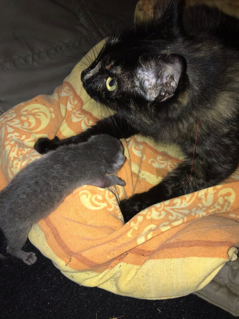 MiezMiez ist eine sehr fürsorgliche Mutter, die sich rührend um ihr Kätzchen kümmert. Die anfänglichen Schwierigkeiten sind überwunden, sie geht ganz und gar in ihrer Mutterrolle auf!