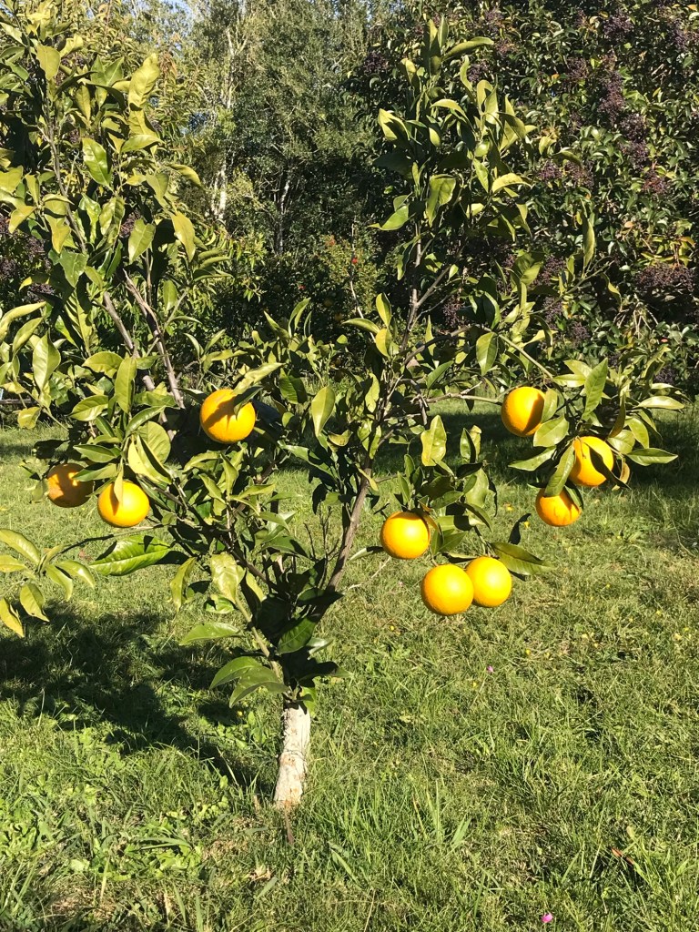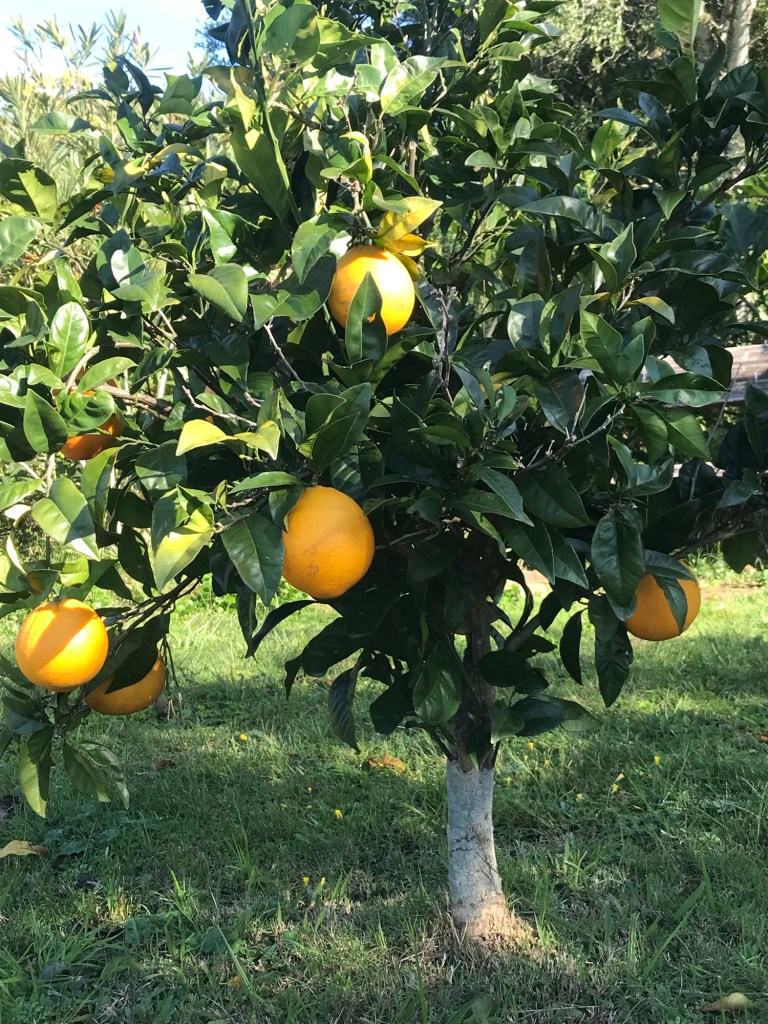 Die ersten Orangen sind erntereif. Inzwischen tragen 10 Orangenbäume die weithin leuchtenden Früchte. Fünf junge Bäumchen sind in diesem Jahr hinzugekommen.