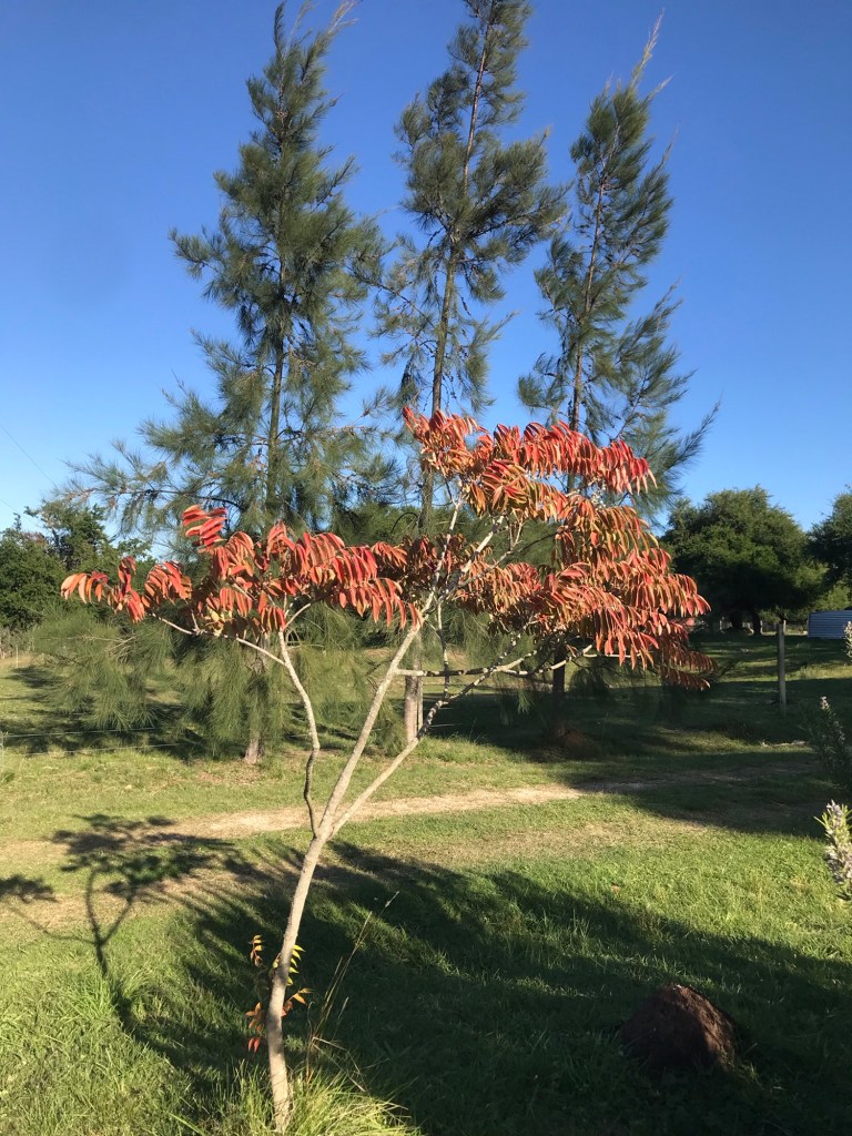 Die ergiebigen Regenfälle haben, wenigstens bei uns, aufgehört. Alles ist noch saftig grün, bis auf die Blätter vieler Büsche und Bäume, die sich nun herrlich bunt färben. Diese gehören allerdings nicht zur heimischen Flora. Die allermeisten einheimischen Gewächse sind immergrün, nur sehr wenige verlieren im Winter ihre Blätter. Und so sind zum Beispiel rechts und links die Ufer der Flüsse im etwas tristen einheitsgrün gehalten.