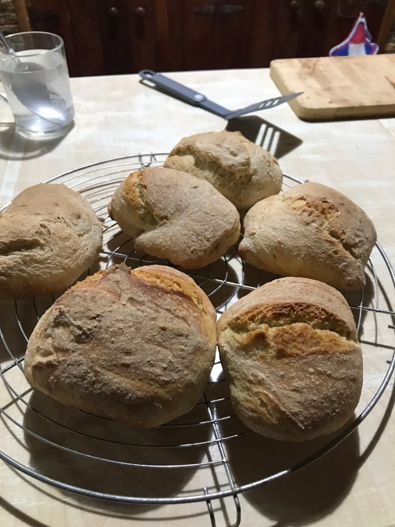 Durch das Backblech nicht stören lassen . Ich habe nur einen Mini-Ofen. Auf ein normales Backblech passen 10-12 Brötchen.
