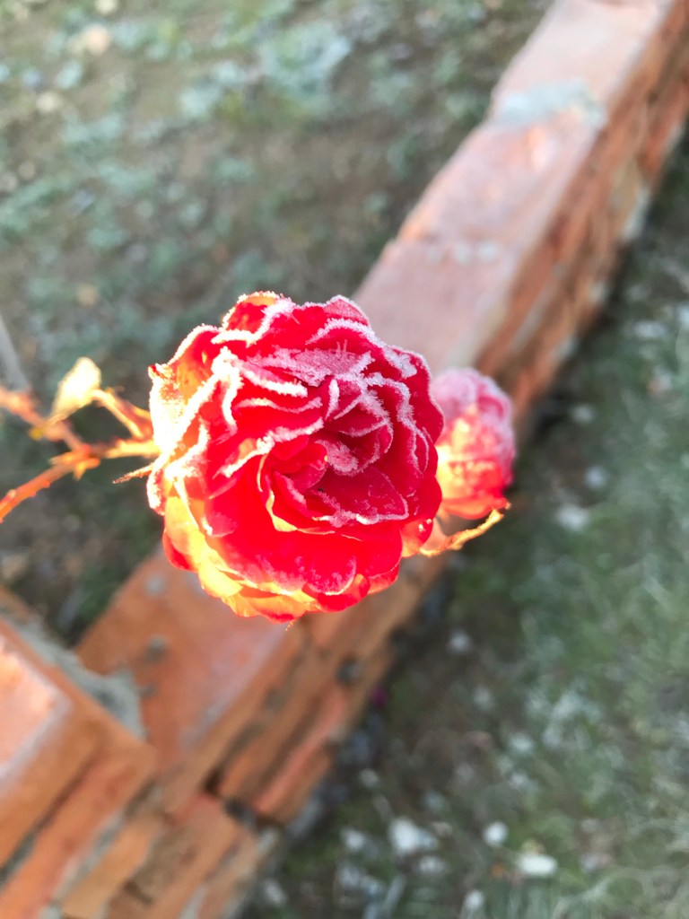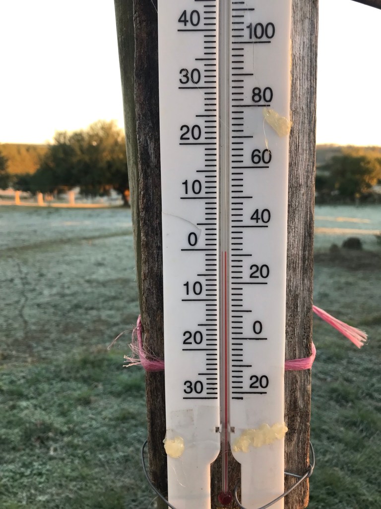 In 1 Meter Höhe knapp 0 Grad, der Boden ist vom Rauhreif weiß gefroren. Die antarktische Luft ist trocken und klar!