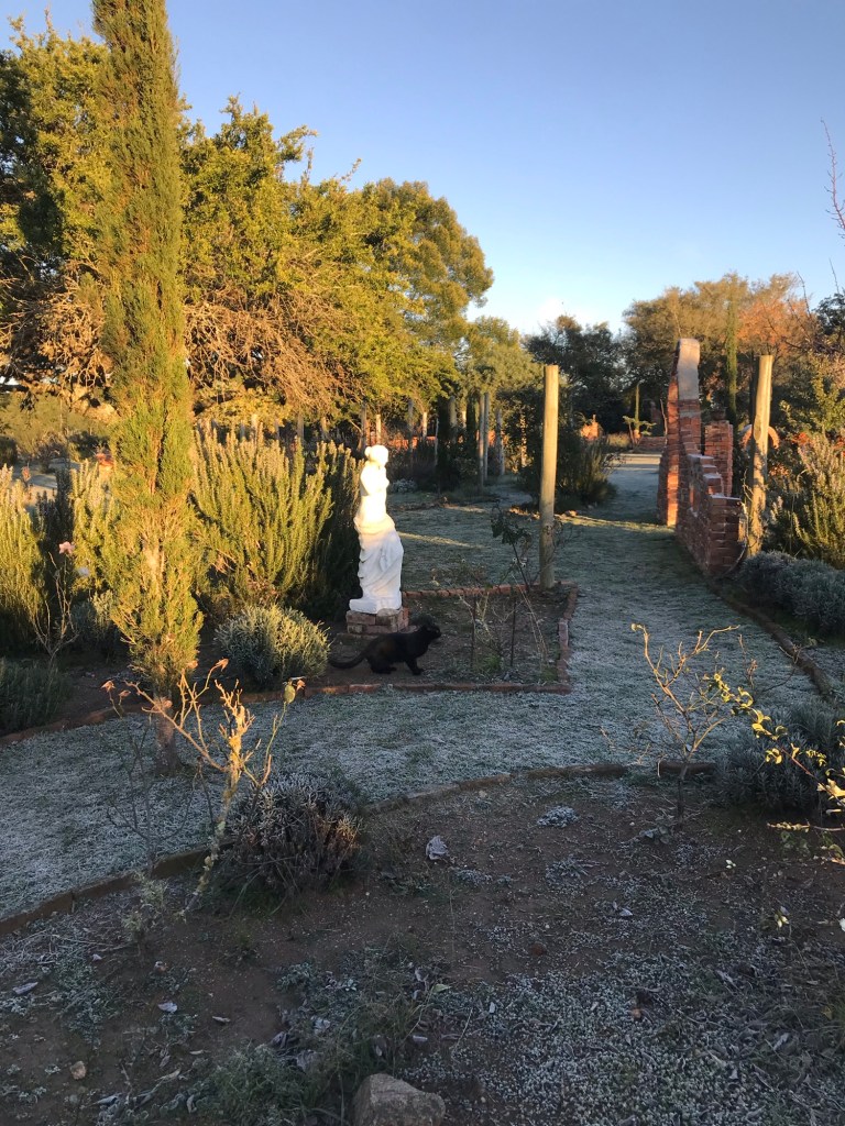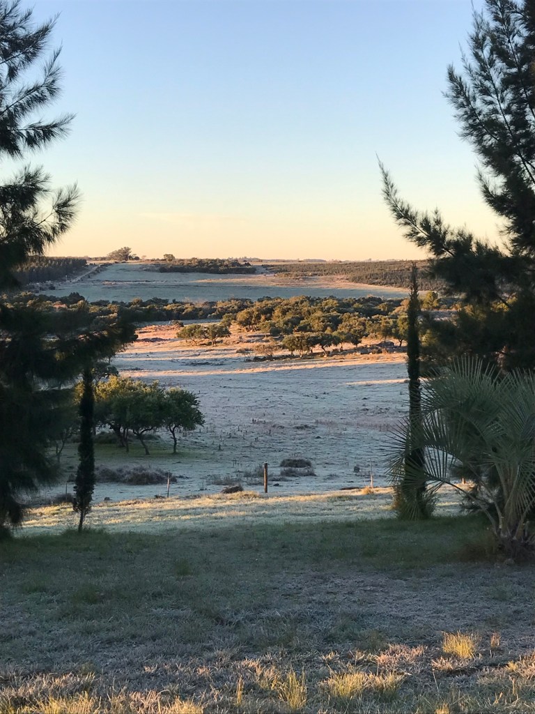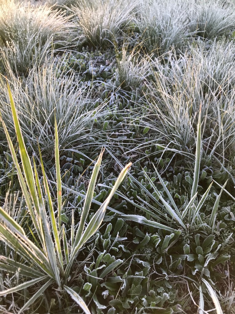Im Gras glitzert es in der aufgehenden Sonne wie Diamantenstaub.