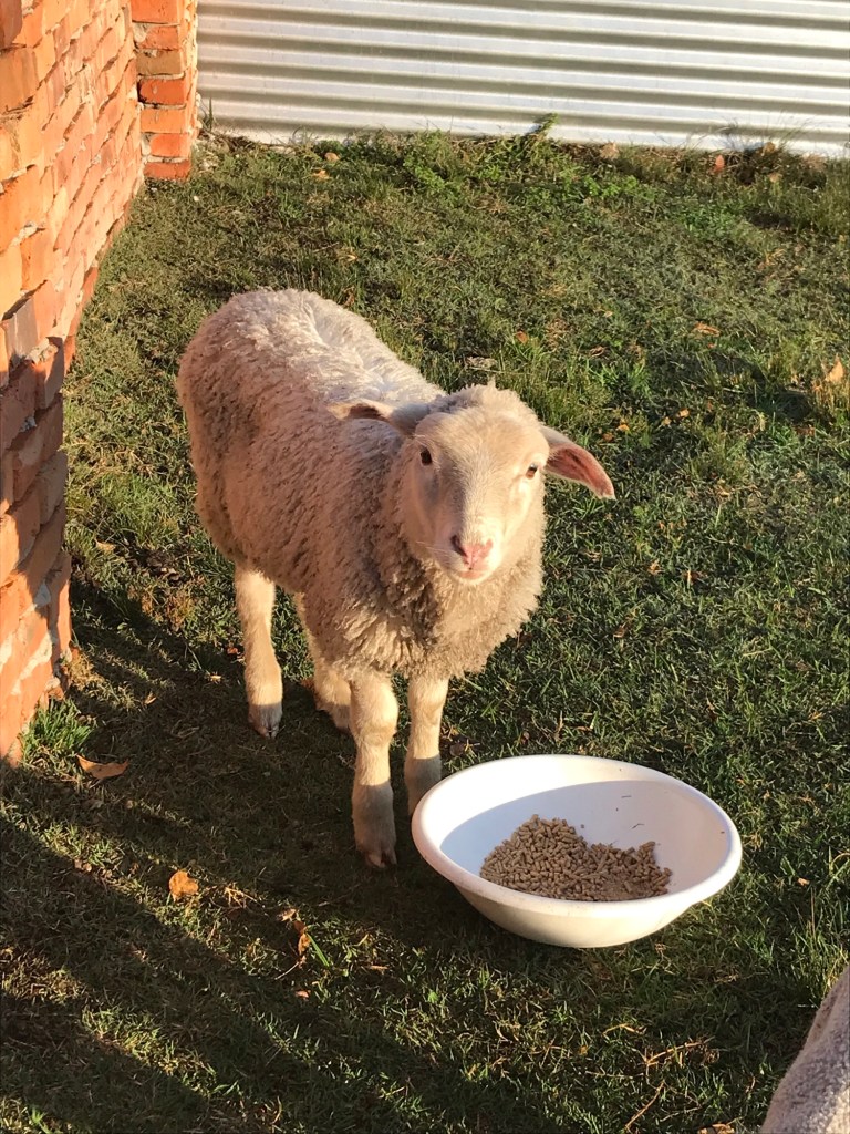 Michel gehört zur Rasse der Mitchel-Schafe, ganz reinrassig ist er nicht, aber das macht ja nichts. Durch einen Schreibfehler, Daniel hatte, als er ihn uns angeboten hatte, das „t“ vergessen, hat er nun auch gleich einen schönen Namen.