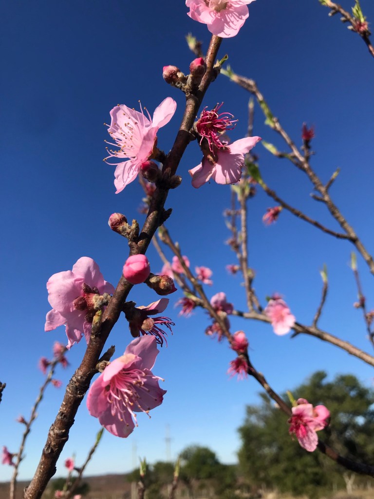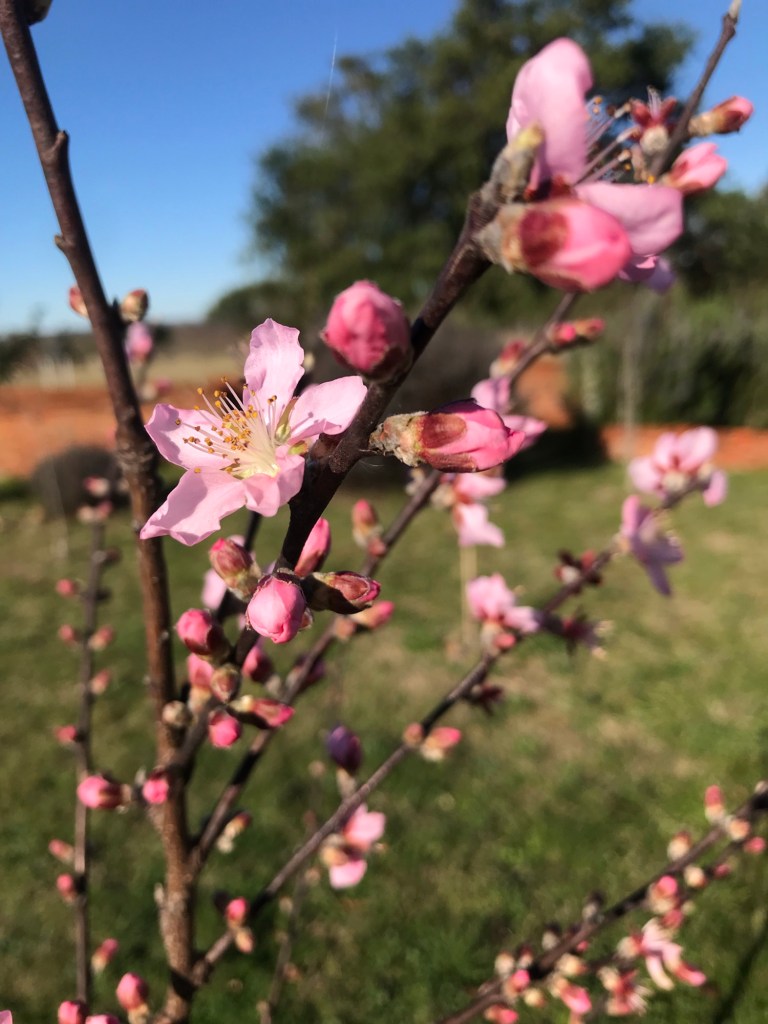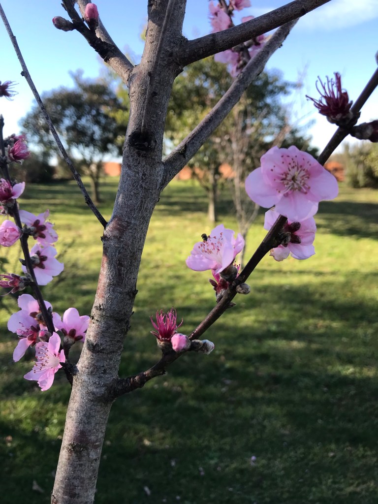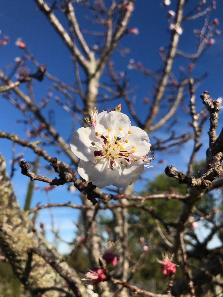 Aprikosen-, Mandel- und Pfirsichbäume blühen um die Wette.