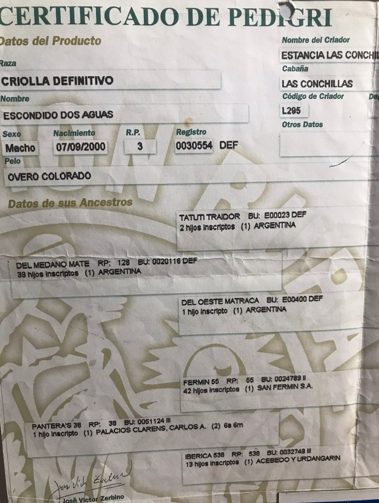 Mein „Brauner“ ist ein reinrassiger Criollo und ist im Zuchtverzeichnis eingetragen. In diesem Jahr wurde er 24 Jahre alt.