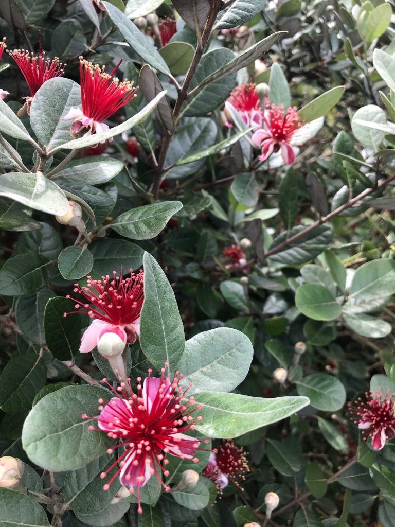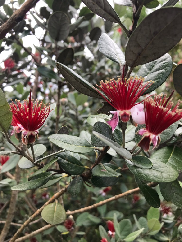 Die Blüten sind herrlich anzusehen. Daraus entwickeln sich dann die fast Kiwi-großen Guaven. Man kann das Fruchtfleisch gut aus der halbierten Frucht auslöffeln. Sie eignet sich hervorragend zur Herstellung von Marmelade. Das angenehme Aroma harmoniert mit jeder anderen Frucht, weshalb sie in der Industrie gerne auch in Fruchtsäften verwendet wird. Wir haben im Mai diesen Jahres, dem hiesigen Herbst, etliche Kilo geerntet, ausgelöffelt und eingefroren. So hatten wir über Monate hinweg die kleine Vitaminbombe zum Genießen.
