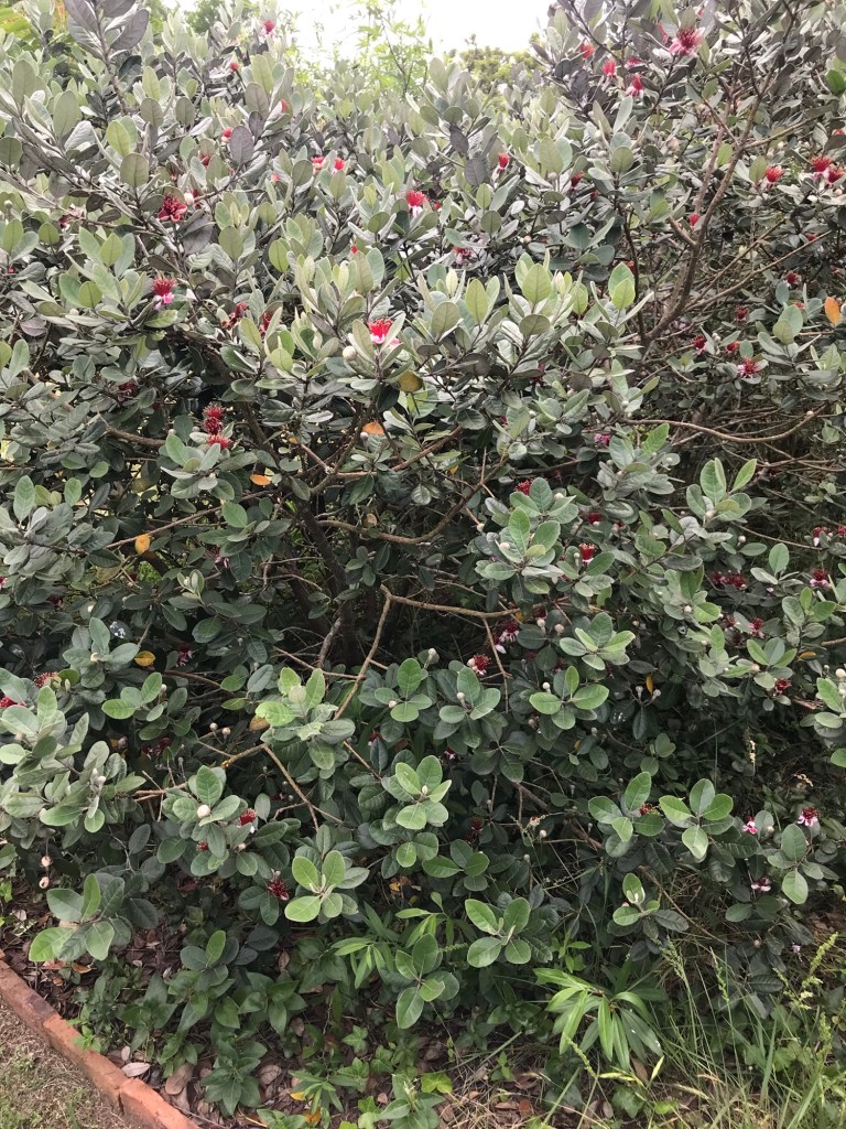 Sie wächst und wächst! Mittlerweile ist sie über 2m hoch und hat einen Durchmesser von mehr als 3m. Obwohl wir beim Pflanzen damals vor 7 Jahren sehr viel Abstand zu den umliegenden Sträuchern gehalten haben, ist die Guave so groß geworden, dass sie alles verdrängt und zur Seite schiebt. Sie braucht wohl noch mehr Platz! Wie groß sie schlussendlich wird, wissen wir nicht.