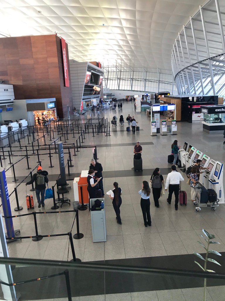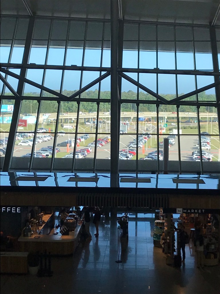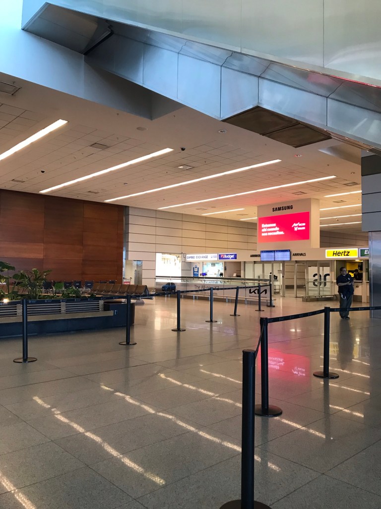 Der Flughafen Carrasco besteht aus drei Ebenen, sehr übersichtlich und ordentlich. Ebenerdig betritt man den Empfangsbereich für die ankommenden Fluggäste. Er ist sehr großzügig gehalten, mit vielen Sitzgelegenheiten für die wartenden Angehörigen. Einige Mietwagenanbieter, ein Geldwechselschalter, eine Apotheke und ein Imbiss finden sich auf der rechten Seite. Linker Hand findet man ein Burger-Imbiss. Das wars schon. Nicht ganz: einen exklusiven VIP-Bereich gibt es hier im Erdgeschoss auch noch!
