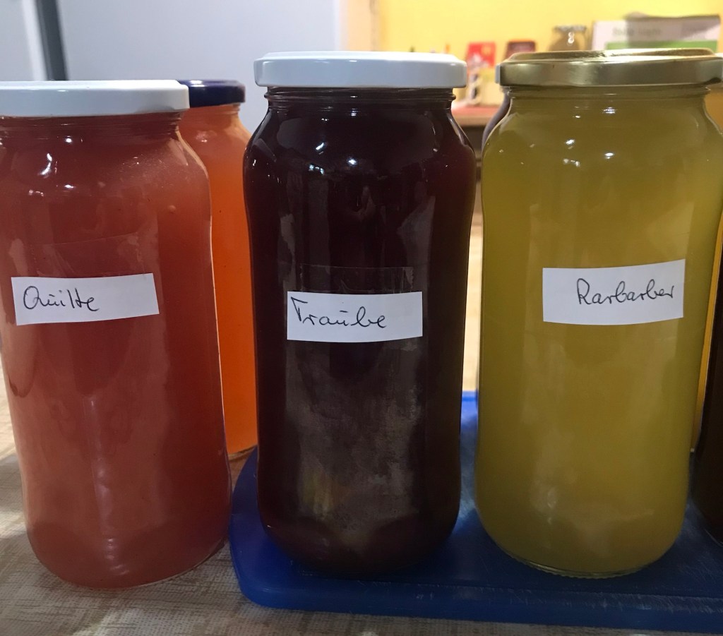 Im Herbst werden die Trauben dann abgeerntet und zu Saft verarbeitet. Wir trinken gerne Obstsaftschorlen aus unseren eigenen Früchten. Ein wenig Saft mit viel sprudelndem Mineralwasser löscht den Durst hervorragend!