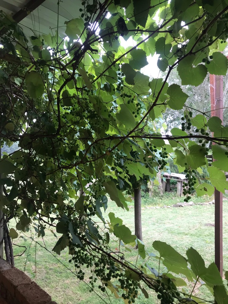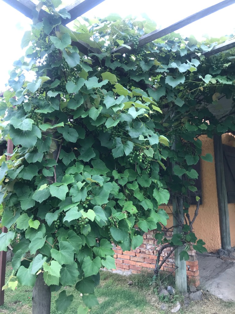 Wir haben 3 Weinstöcke an der Nord- und Westseite des Hauses gepflanzt, damit sie uns im Sommer viel Schatten spenden und die Wände kühl halten.